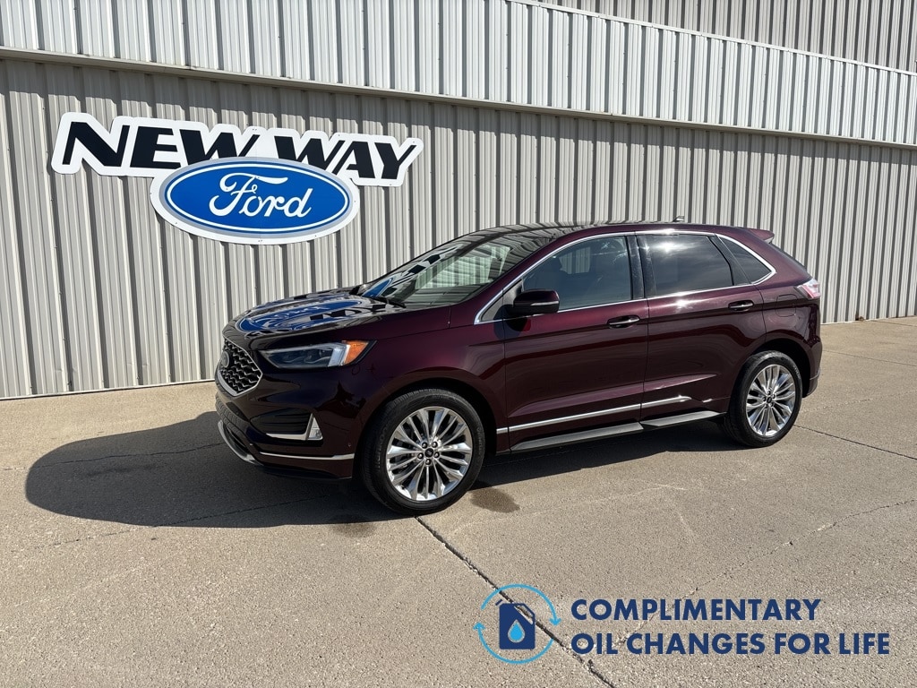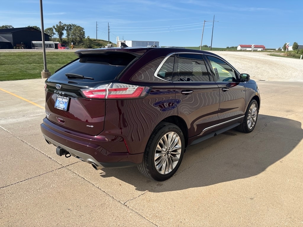 Complimentary Oil Changes For Life, AWD. Burgundy 2024 Ford Edge Titanium 4D Sport Utility AWD 8-Speed Automatic EcoBoost 2.0L I4 GTDi DOHC Turbocharged VCT